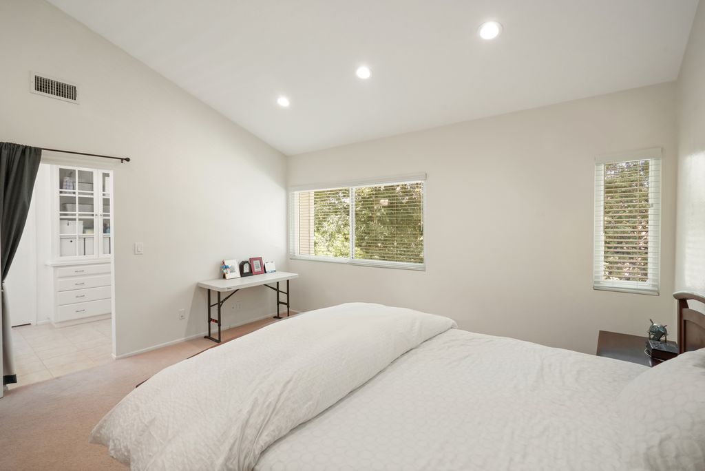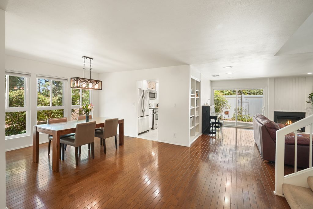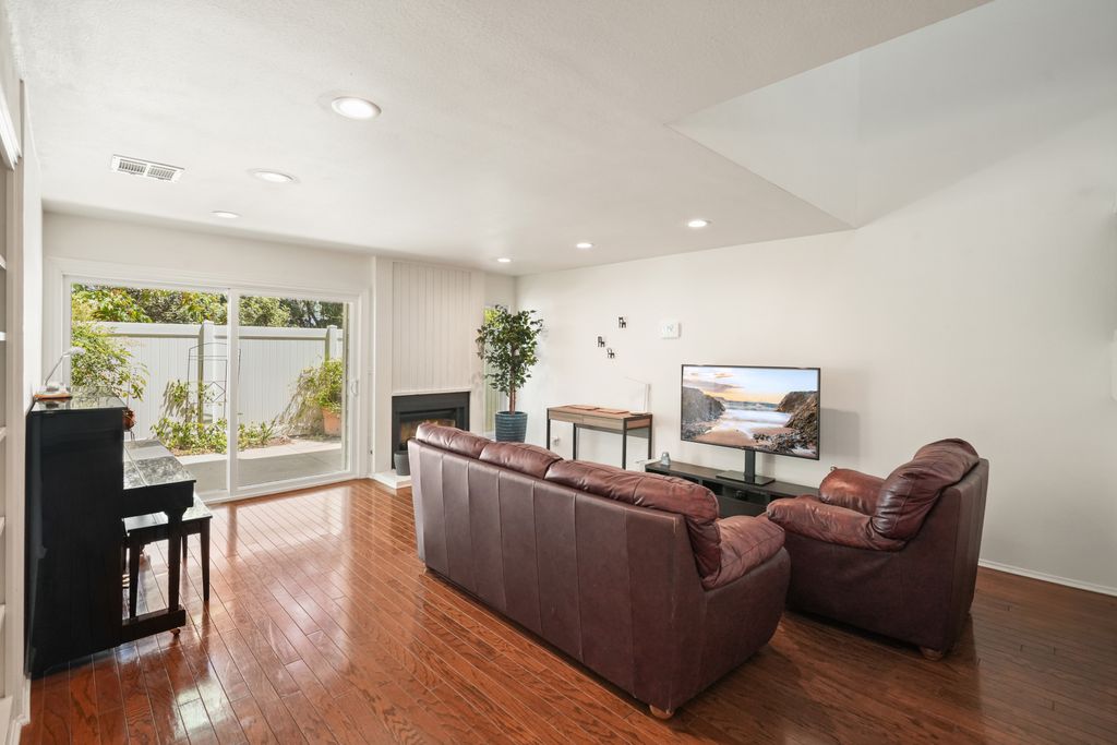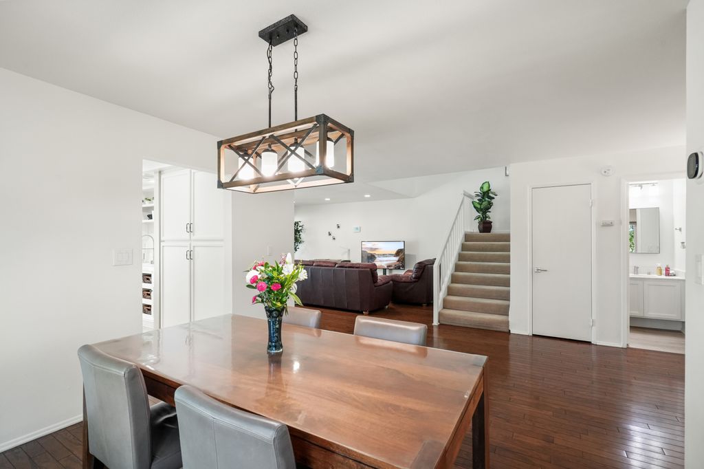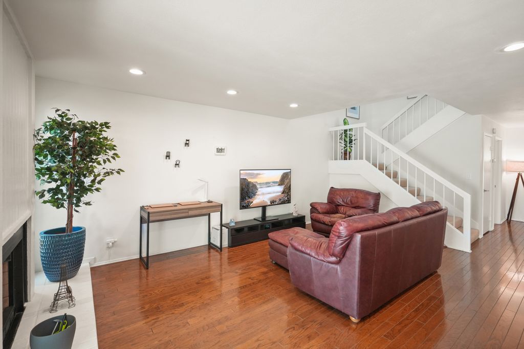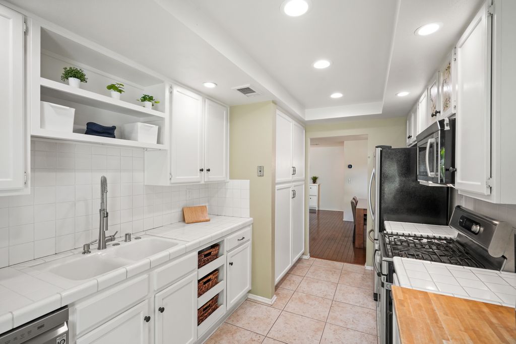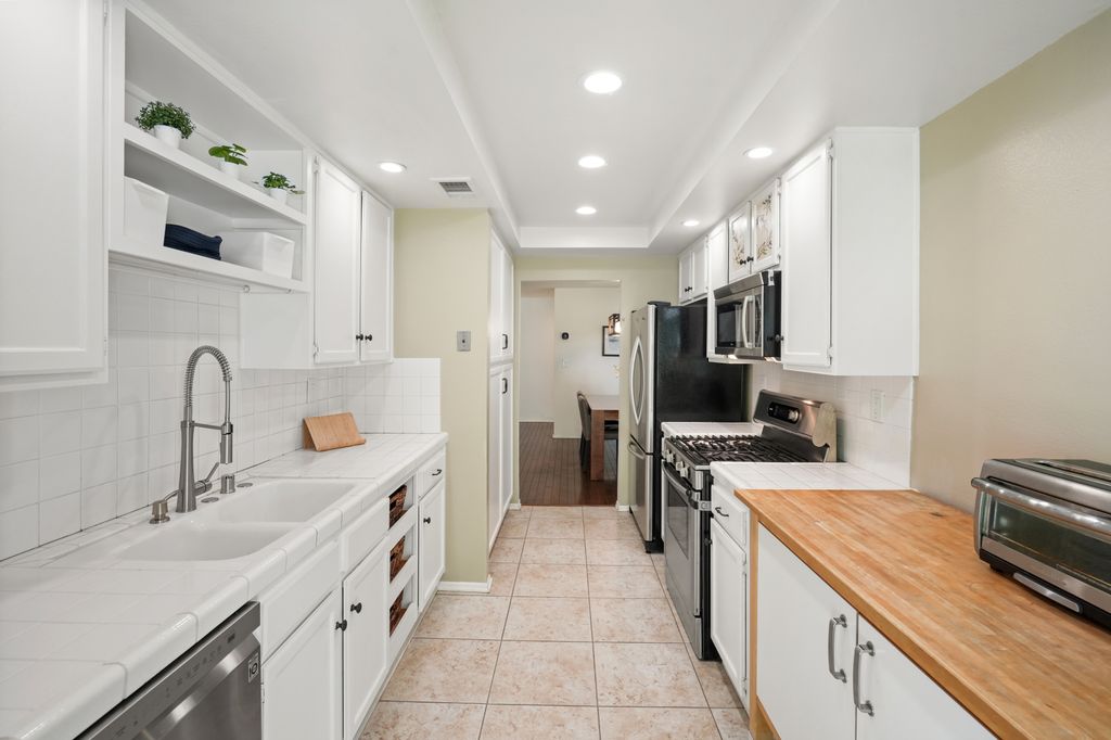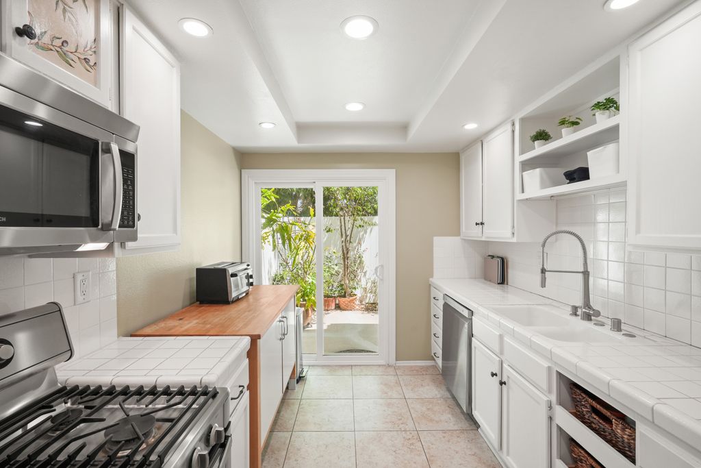 Welcome to this model perfect end-unit located in the coveted Northridge Townhome Estates Community! This beautifully maintained two-story townhome offers the perfect blend of privacy, space, and modern living, with only one shared wall and over 2,000 square feet of thoughtfully updated interior space. This 3 bed, 2.5 bath home exudes warmth and character, combining traditional charm with tasteful modern upgrades to create a true sense of home. As you enter, you're greeted by a bright, open layout filled with tons of natural light. The spacious dining area flows seamlessly into a pristine kitchen featuring stainless steel appliances, custom built-in cabinetry, recessed lighting, and a sliding glass door that opens to a serene patio—ideal for al fresco dining or morning coffee. The generous living room is highlighted by a modern fireplace, recessed lighting, and another large slider that leads to the fenced private outdoor space with newer vinyl fencing, offering both comfort and seclusion. A stylishly updated half bath and gleaming wood floors that span the entry, dining, and living areas complete the inviting first floor. Upstairs, a large, sunlit loft provides a flexible bonus space—perfect for a family room, home office, playroom, or a potential fourth bedroom. The spacious primary suite boasts vaulted ceilings, recessed lighting, and a luxurious en-suite bathroom with a custom double-sink vanity with granite countertops, a soaking tub, and a separate glass-enclosed shower. Down the hall are two additional generously sized bedrooms that share a full updated bathroom with dual sinks. Additional features include a private two-car garage with direct access, a convenient in-unit laundry area, recessed lighting throughout, and picturesque views of mature trees and park-like surroundings as the unit is situated at the back of the community. The HOA offers an impressive array of amenities, including a swimming pools, gym, tennis courts, clubhouse, internet and trash. Located in the Granada Hills Charter High School area. This move-in-ready home is a rare opportunity in one of Northridge’s most sought-after communities.