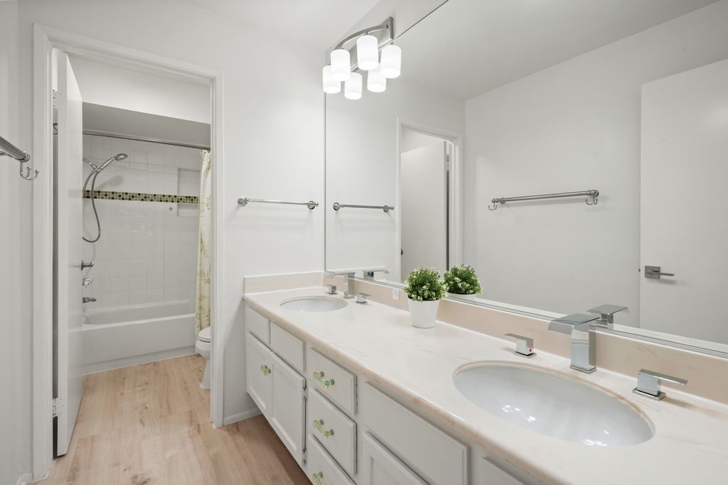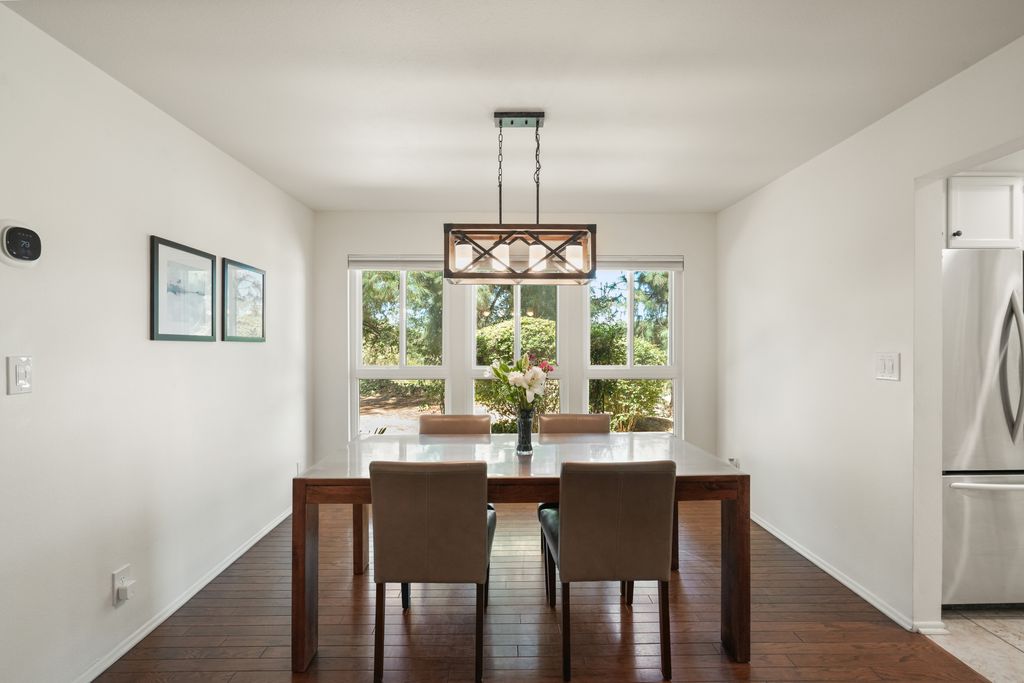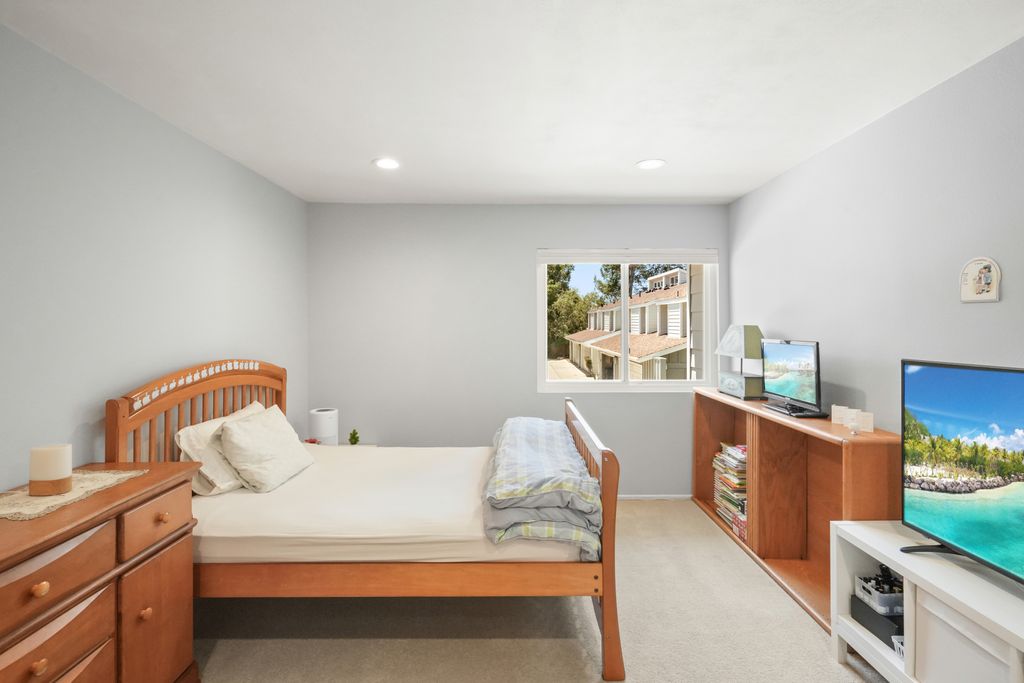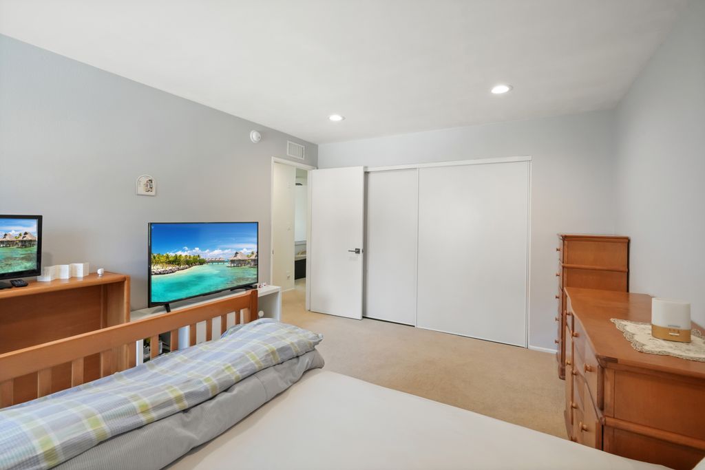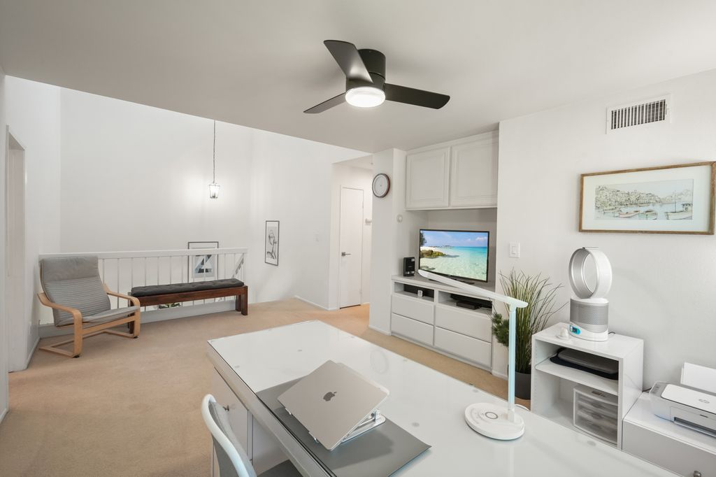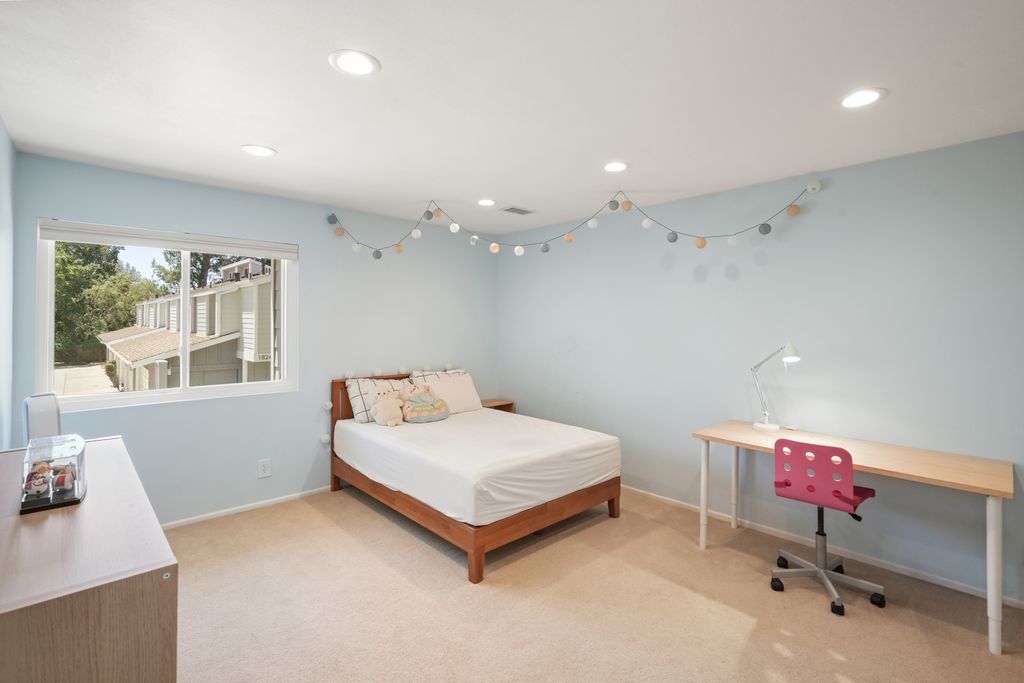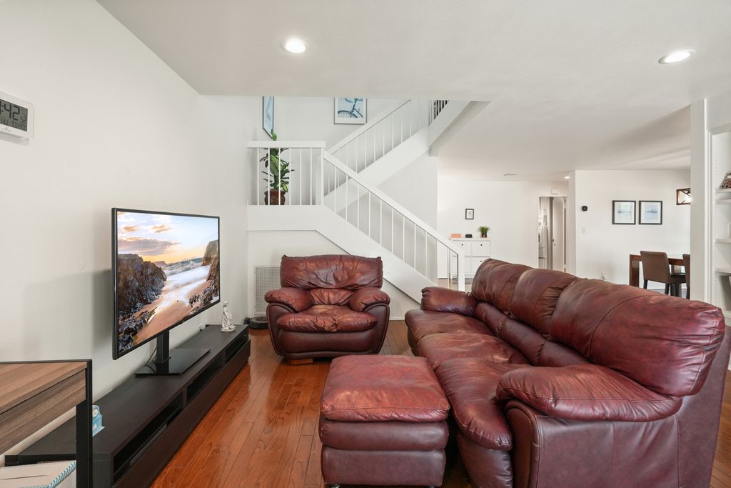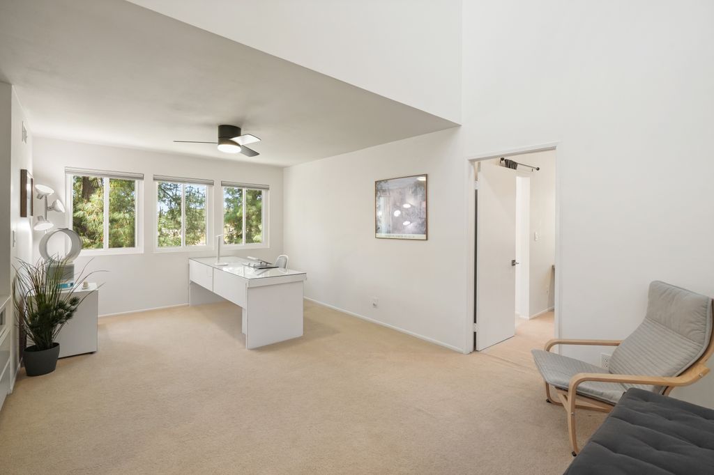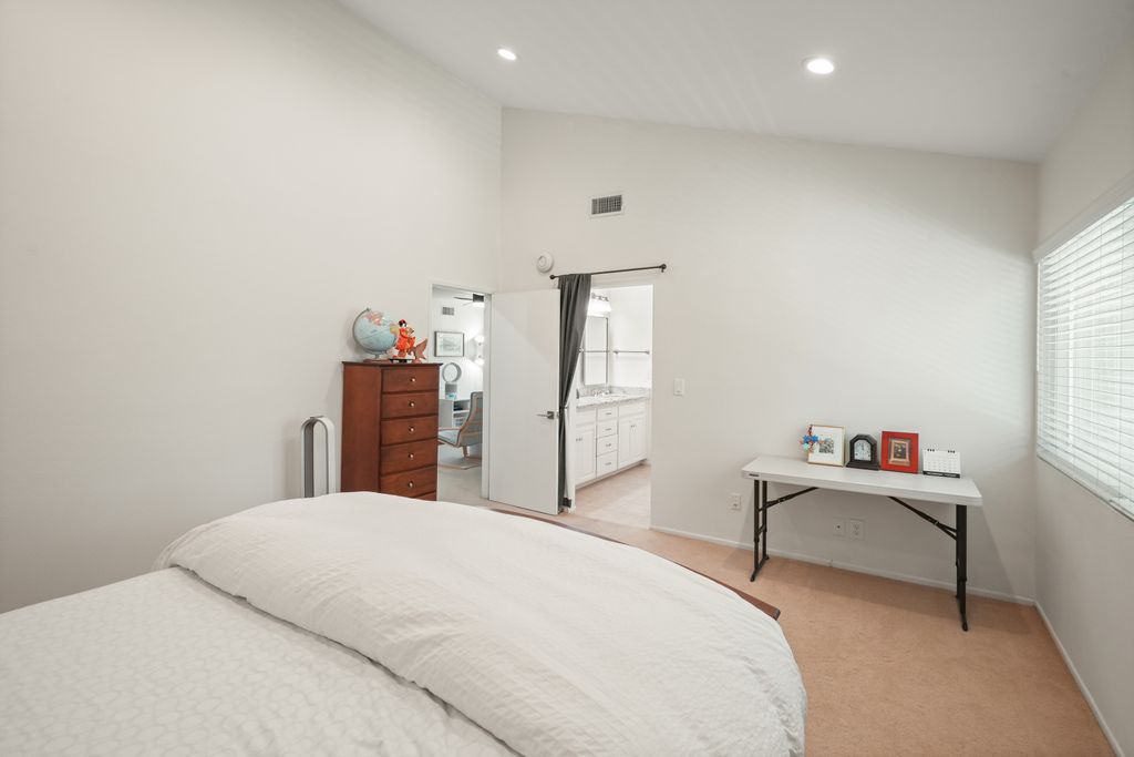 Welcome to this model perfect end-unit located in the coveted Northridge Townhome Estates Community! This beautifully maintained two-story townhome offers the perfect blend of privacy, space, and modern living, with only one shared wall and over 2,000 square feet of thoughtfully updated interior space. This 3 bed, 2.5 bath home exudes warmth and character, combining traditional charm with tasteful modern upgrades to create a true sense of home. As you enter, you're greeted by a bright, open layout filled with tons of natural light. The spacious dining area flows seamlessly into a pristine kitchen featuring stainless steel appliances, custom built-in cabinetry, recessed lighting, and a sliding glass door that opens to a serene patio—ideal for al fresco dining or morning coffee. The generous living room is highlighted by a modern fireplace, recessed lighting, and another large slider that leads to the fenced private outdoor space with newer vinyl fencing, offering both comfort and seclusion. A stylishly updated half bath and gleaming wood floors that span the entry, dining, and living areas complete the inviting first floor. Upstairs, a large, sunlit loft provides a flexible bonus space—perfect for a family room, home office, playroom, or a potential fourth bedroom. The spacious primary suite boasts vaulted ceilings, recessed lighting, and a luxurious en-suite bathroom with a custom double-sink vanity with granite countertops, a soaking tub, and a separate glass-enclosed shower. Down the hall are two additional generously sized bedrooms that share a full updated bathroom with dual sinks. Additional features include a private two-car garage with direct access, a convenient in-unit laundry area, recessed lighting throughout, and picturesque views of mature trees and park-like surroundings as the unit is situated at the back of the community. The HOA offers an impressive array of amenities, including a swimming pools, gym, tennis courts, clubhouse, internet and trash. Located in the Granada Hills Charter High School area. This move-in-ready home is a rare opportunity in one of Northridge’s most sought-after communities.